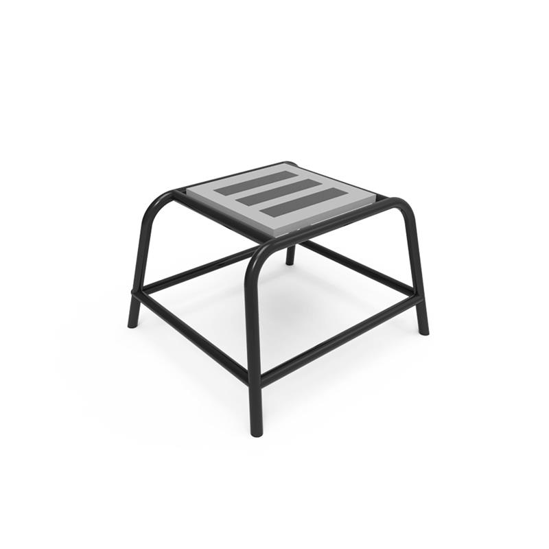 Fabricado en caño de 25,4mm de diámetro. Pintado en polvo horneado de alto impacto. Posee una madera de 18mm de espesor que permite realizar el apoyo de manera segura y confortable. En sus patas posee regatones de PVC flexible de alta resistencia para amortiguar el impacto en la superficie. Industria Argentina