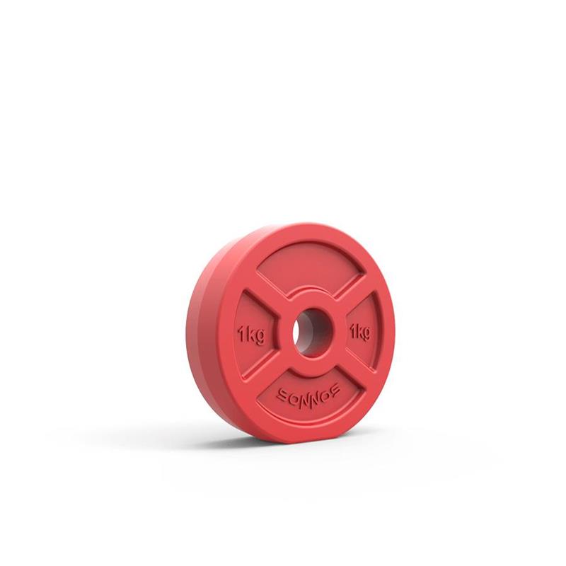 Disco de PVC de alto impacto relleno con arena y cemento lo que permite dar el peso del elemento con un rango de +/- 5%. Permite ser acoplado a barras, mancuernas para armar, estructuras y soportes de Ø25mm siendo un elemento apto para su utilización tanto intensiva profesional como en el ámbito hogareño. Este elemento es usado principalmente como complemento de una barra tanto en una clase de fitness grupal como en otro tipo de actividades (entrenamientos personalizados, salas de musculación, etc.).