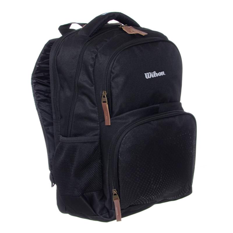 Mochila Wilson con dos compartimentos principales y dos bolsillos delanteros con cierres. Manijas reforzadas y regulables.