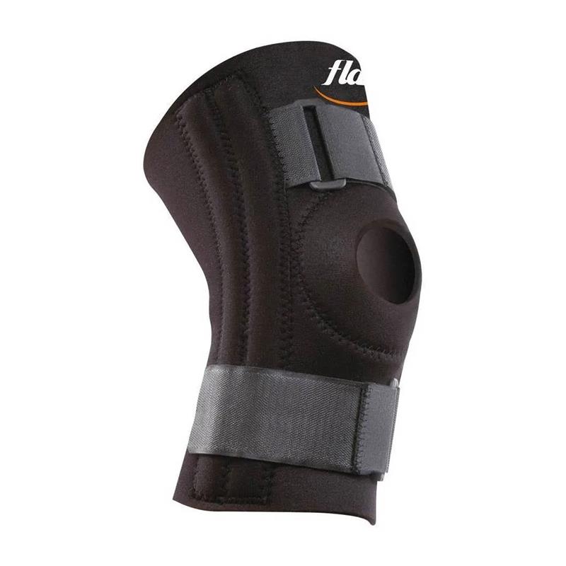 Moderada estabilidad ligamentaria, Flejes laterales semi flexibles, Straps de Velcro® ajustables, Calor terapéutico, Compresión, Neoprene M.P. 4.5mm. Talles: S (30-34 cms) – M (35-40 cms) – L (41-45 cms) – XL (46-50 cms) – Medir al rededor de la rotula – Color: Negro